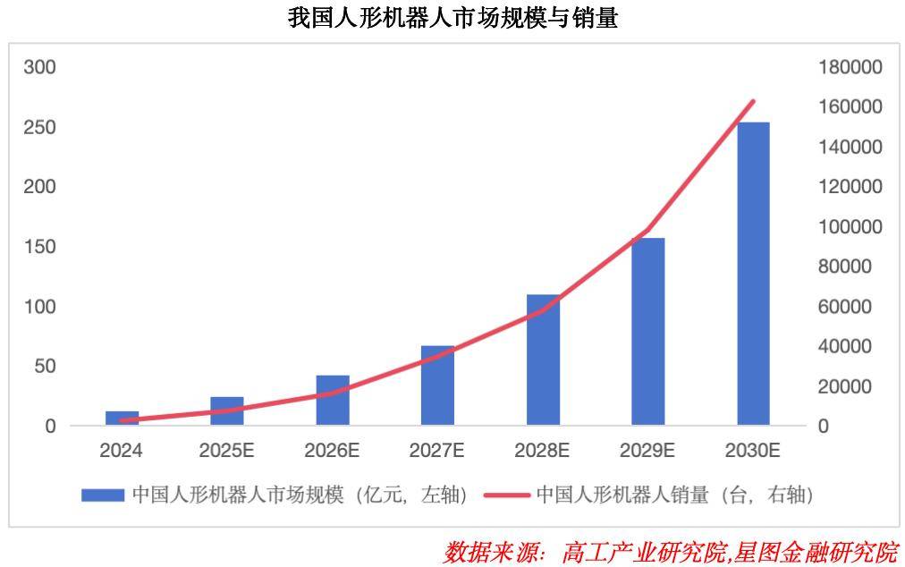 根据高工产业研究院数据,2024年我国人形机器人市场规模已达12.54亿元,预计2030年将增至254亿元,销量有望突破16万台。摩根士丹利进一步上调我国人形机器人销量预测,将2026年销量预期上调至2.8万台,较此前预测实现翻倍。从全球市场来看,Omdia预测2035年全球人形机器人出货量有望达到260万台,行业将正式迈入指数级增长阶段。