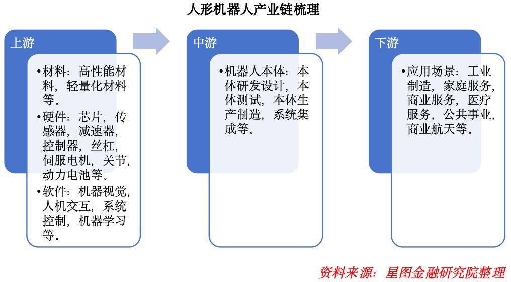 具体到产业链细分维度,人形机器人产业链可划分为上游核心材料与软硬件、中游本体制造与系统集成、下游应用场景环节。