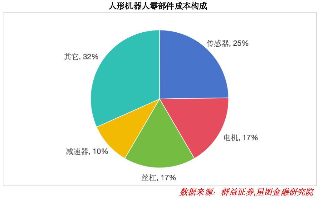 从具体成本结构来看,传感器占比达25%,为最大成本项;电机与丝杠各占约17%,减速器占比约10%,其余成本占比32%。
