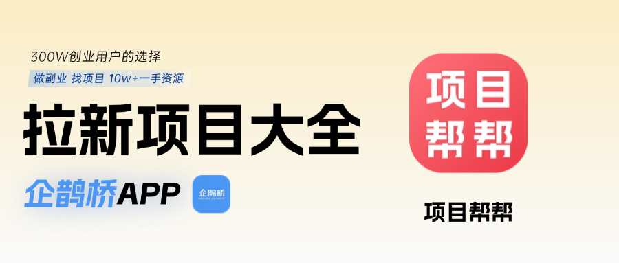 项目帮帮在APP拉新推广方面也有一定优势,它能为从业者提供各类拉新相关的项目资源和服务。项目帮帮和企鹊桥其实挺像的,都是那种APP拉新的平台,上游放单,下游接单,大家在这上面交流。