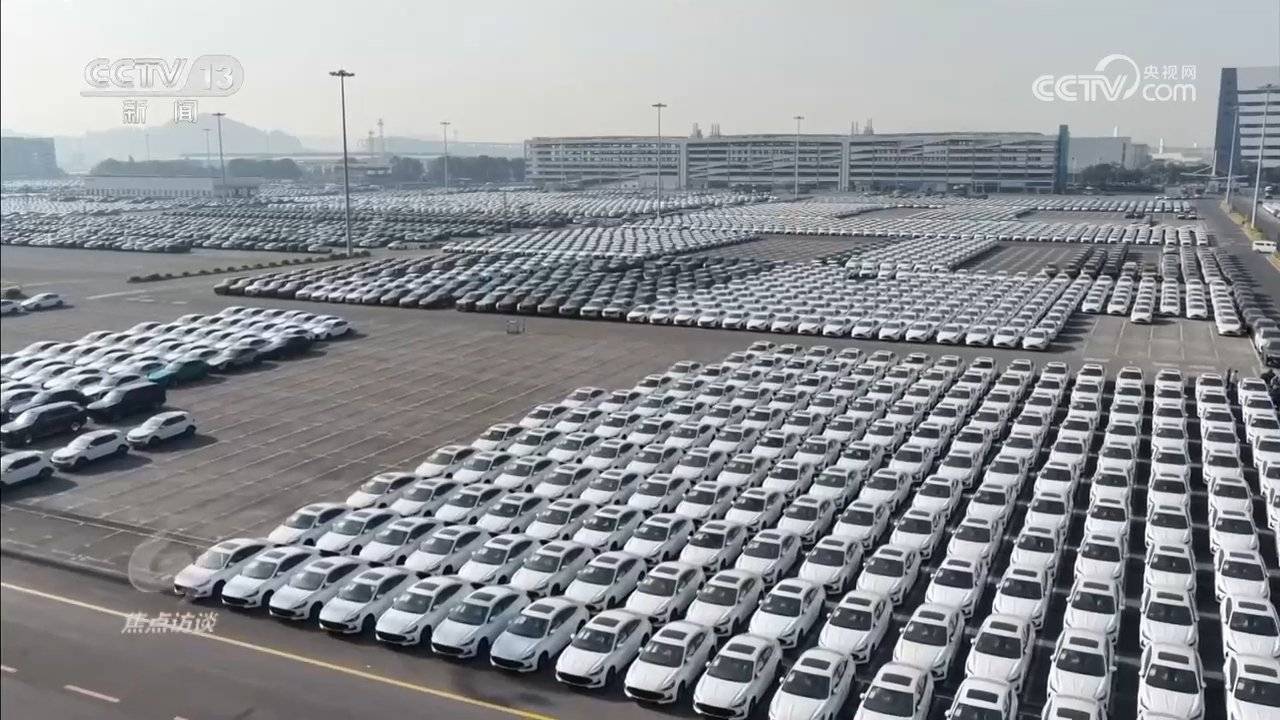 除了服务外贸的“硬支撑”在不断升级,“软环境”同样也在持续优化。广州港南沙汽车码头,一艘巨大的滚装船正在紧张作业。一辆辆驶向甲板的正是当前中国出口的“明星产品”——新能源汽车。